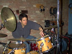 Photos 03/26/02 These photos are, for the most part, from a MacArthur drum tracking session at Wombat Recording, Brooklyn, NY. Arthur Winer cracked the whip, Ross Bonadonna pushed some buttons, and Matthew Macgillivray did all the real work. Matthew Macgillivray tunes a tom. Back to photo thumbnails