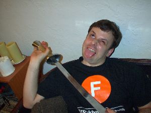 Arthur Winer with T'ai Chi knife and typical F train commuter expression.