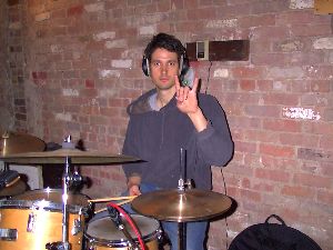 Matthew Macgillivray is making the international sign for "I am a drummer getting my picture taken".